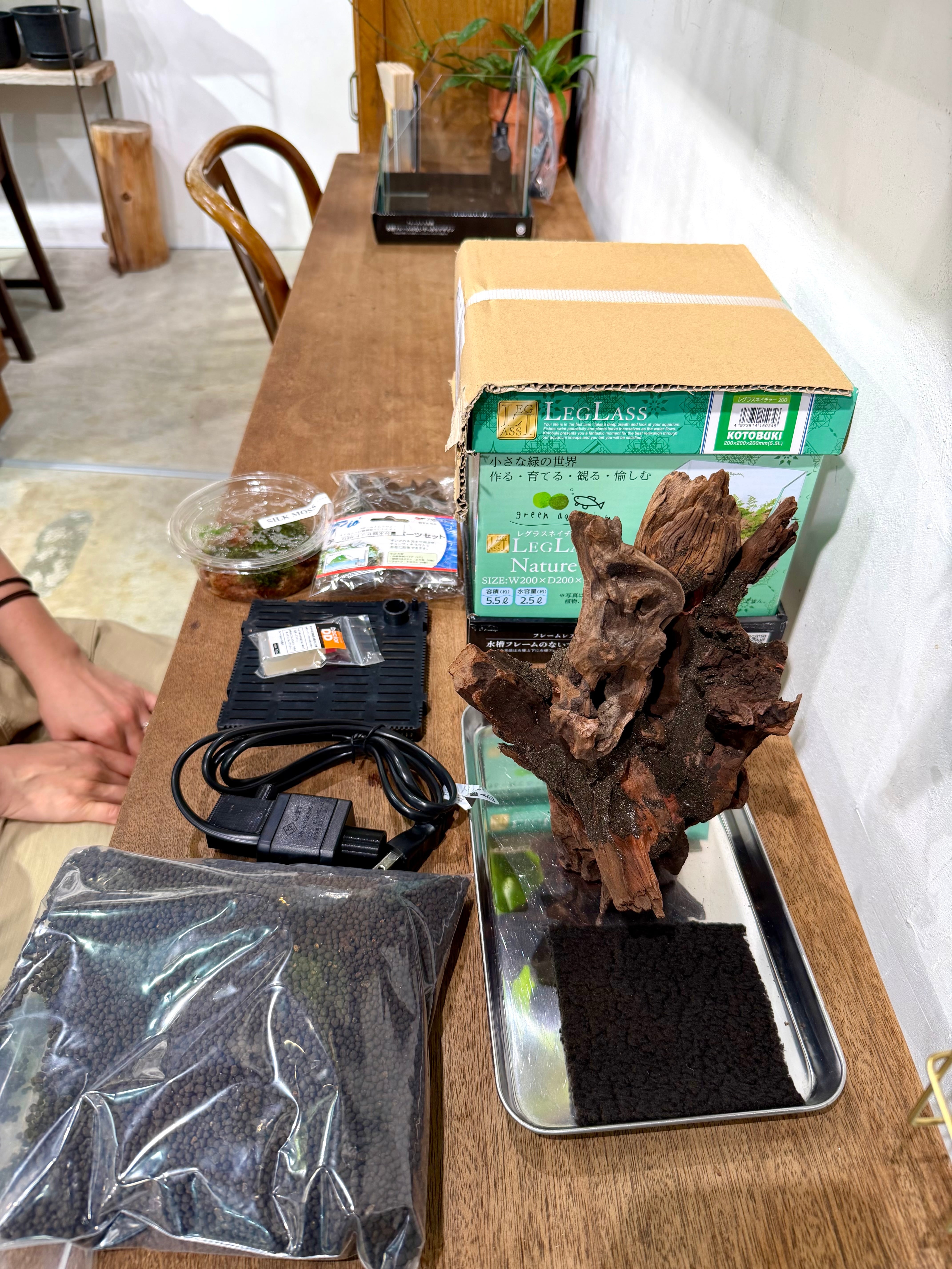 お店をオープンしてからの2年4ヶ月、たくさんのお客様に滝のあるレイアウトを提供してきましたが、多くの方が流木の組み合わせにお悩みでした。そんな声にお応えするために、流木組みを完成品としてセットに加えました!