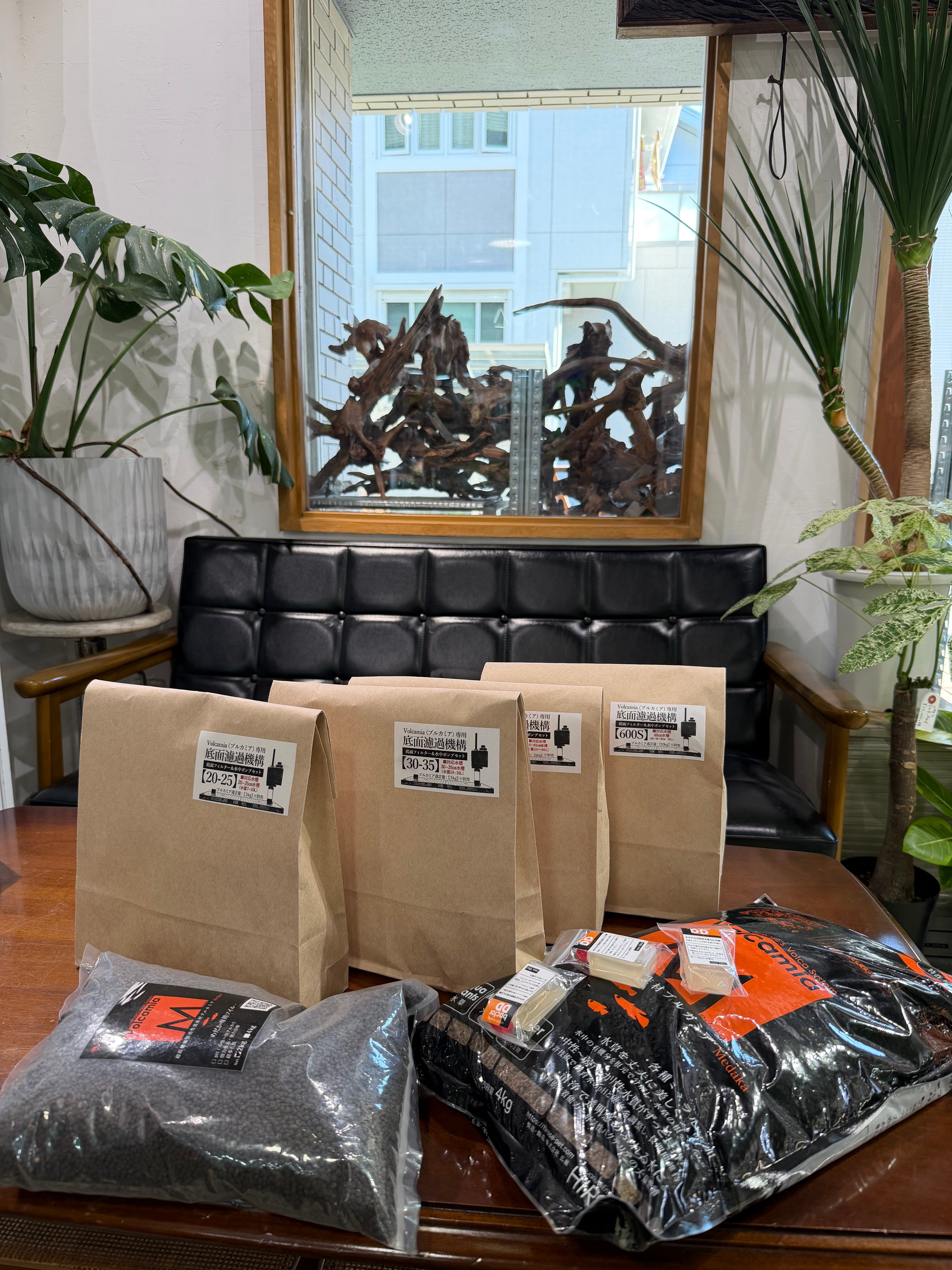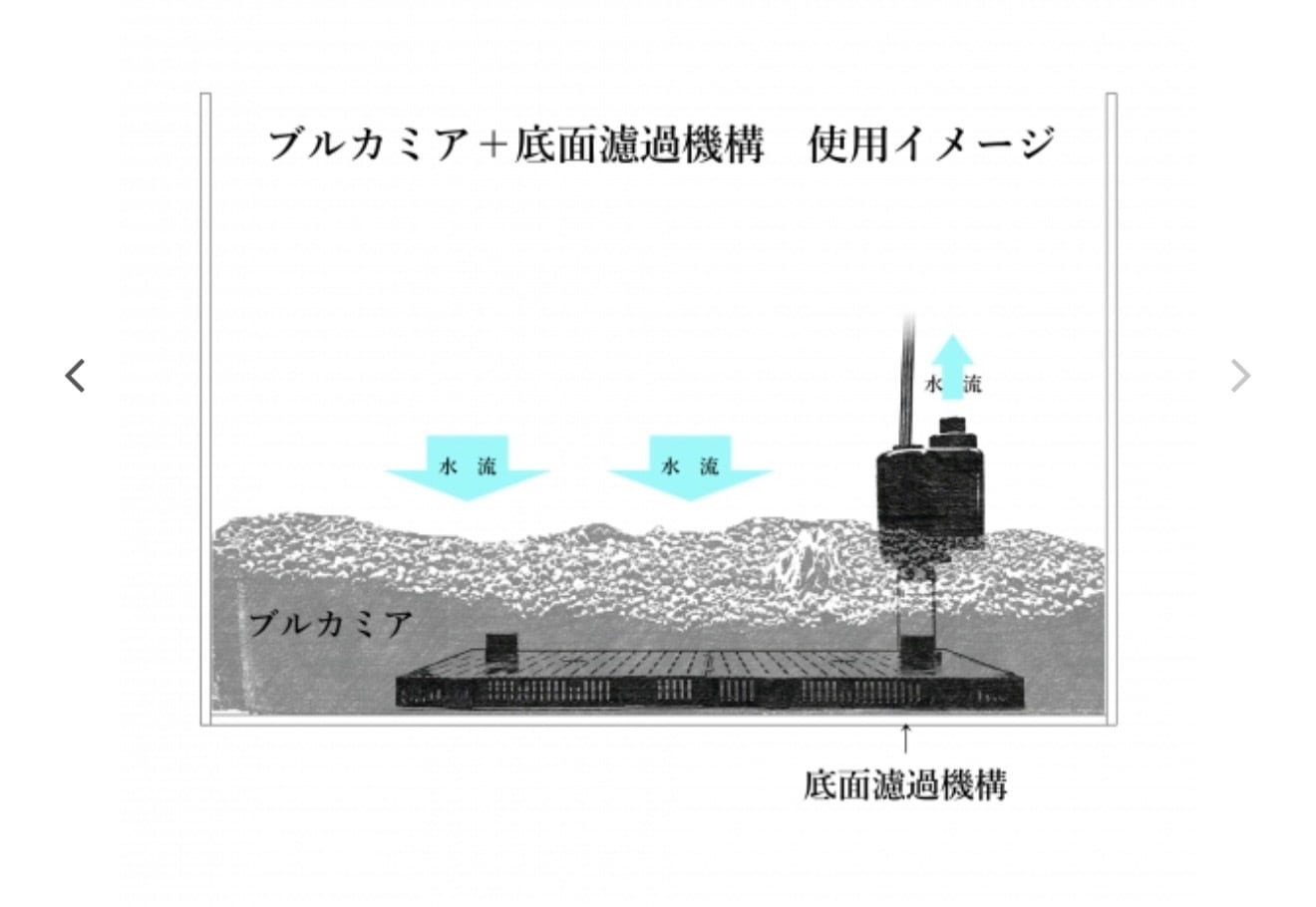 設置方法はとても簡単で、フィルターとポンプを敷き、ブルカミアを約5から6㌢の厚さで敷き詰め、注水して12時間循環させれば生体を迎え入れられます。