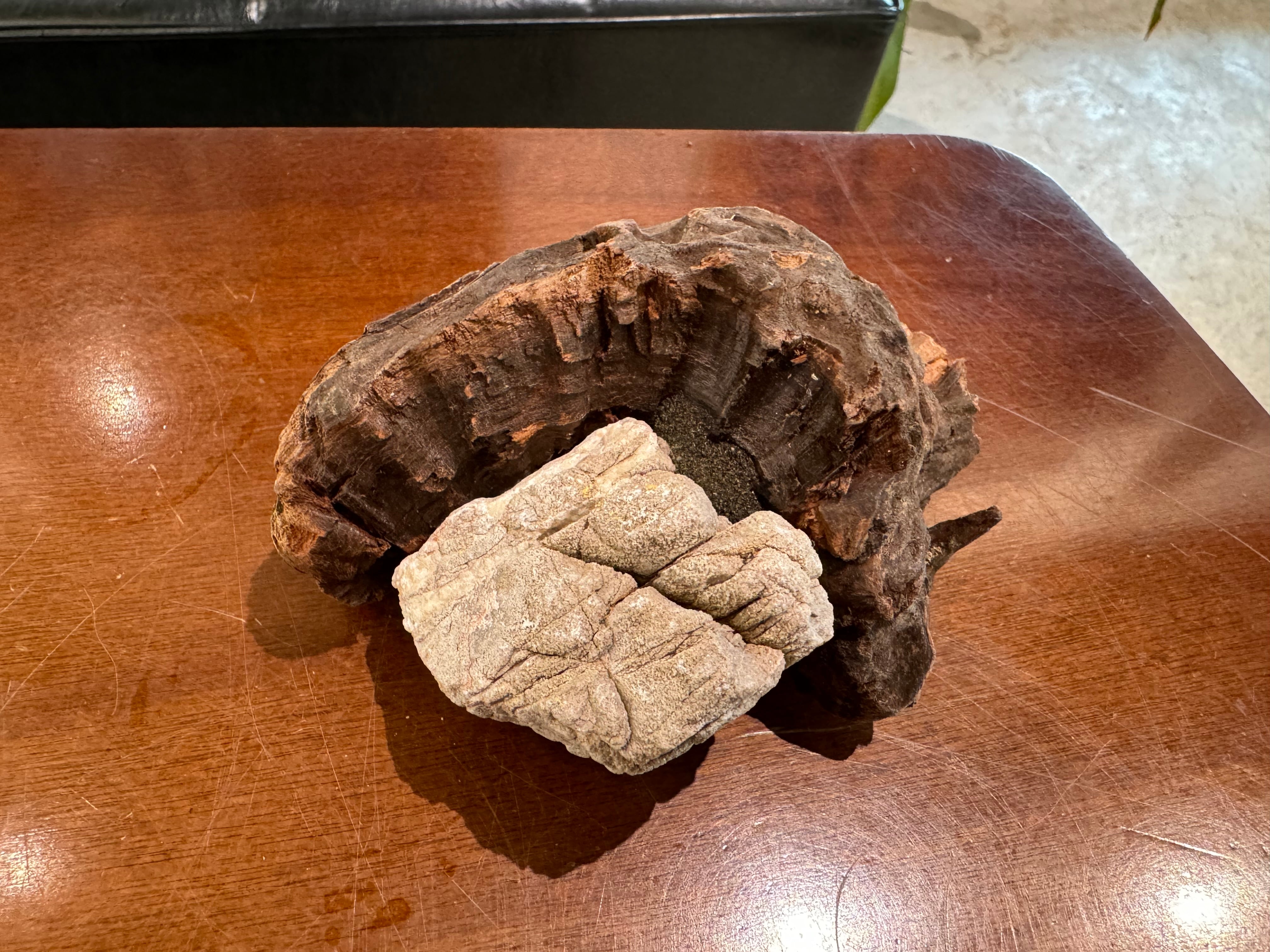 流木と石がくっついているレイアウト素材
