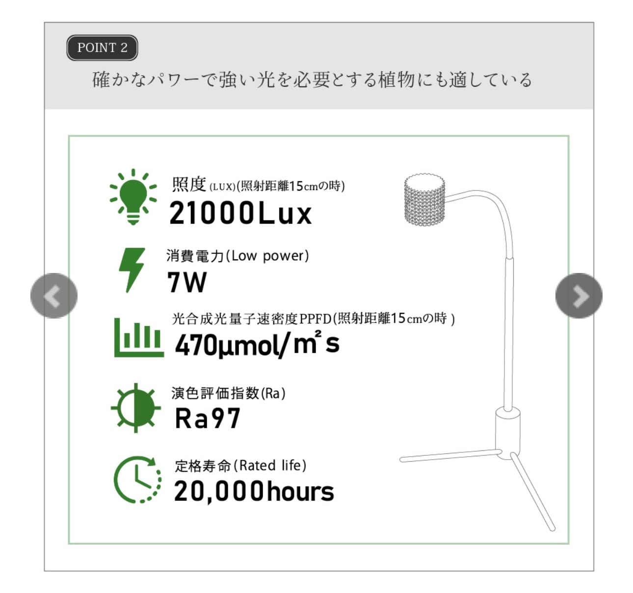 植物の見た目もまるで太陽に照らされているように美しく演出することができます。 お気に入りの植物にぜひご使用下さい。